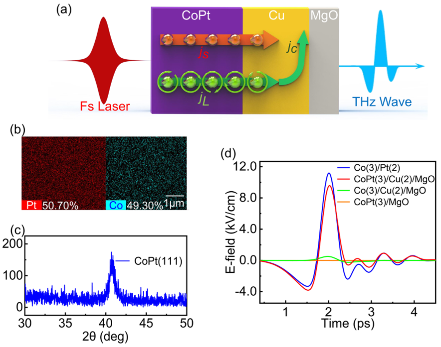 △利用飞秒激光激发CoPt/Cu/MgO产生轨道太赫兹辐射