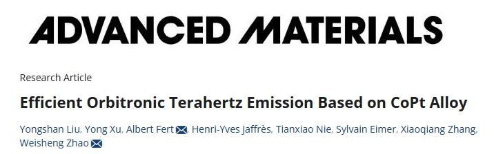 (通讯员/徐媛)近日,杭州北航国际创新研究院(学院)自旋芯片与技术全国重点实验室赵巍胜教授团队与巴黎萨克雷大学Albert Fert教授团队再度在轨道电子学领域取得重要进展。团队提出了利用CoPt合金来产生轨道电流这一新思路,设计了CoPt/Cu/MgO结构来表征其轨道产生,并通过飞秒激光激发实验观察到强轨道太赫兹发射,该工作为开发高效的轨道太赫兹辐射源铺平了道路,相关研究成果以Efficient Orbitronic Terahertz Emission Based on CoPt Alloy为题在线发表于《先进材料》(Advanced Materials)上。