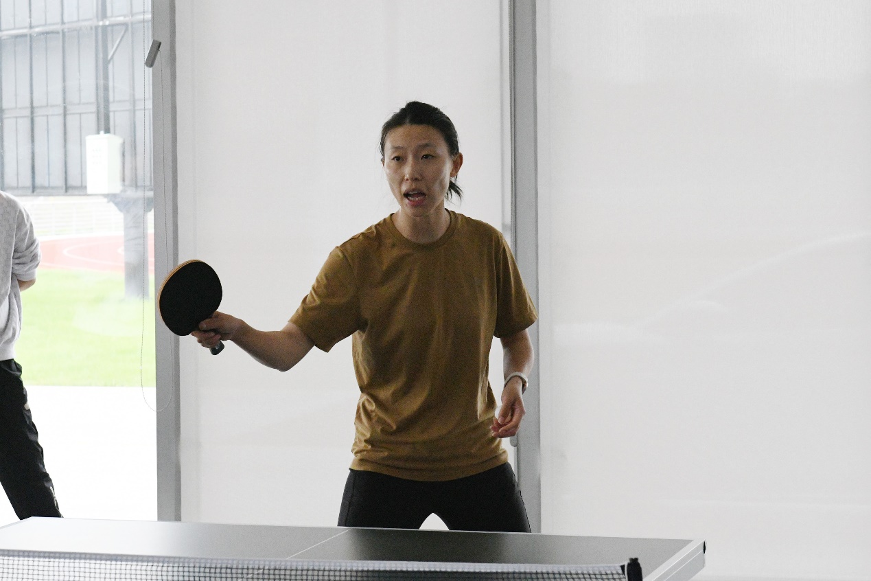 武杨老师以其独特的削球技术和出色的赛事成绩在乒乓球界享有盛誉,她深入浅出地向师生们讲解了乒乓球的基本规则和技巧,并结合自身比赛经验,分享了自己如何在紧张激烈的比赛中保持冷静、灵活应对各种复杂局面的心得体会。随后,她向师生们展示了精彩绝伦的乒乓球技巧和战术,让在场师生近距离感受乒乓球名将的非凡风采。在互动环节,师生们踊跃上场,与武杨老师切磋球技。武杨老师耐心细致地指导每一位参与者,针对每个人的技术特点和存在问题,给出了改进建议和训练方法。她勉励师生们要勇于尝试、敢于挑战,不断提升乒乓球水平。