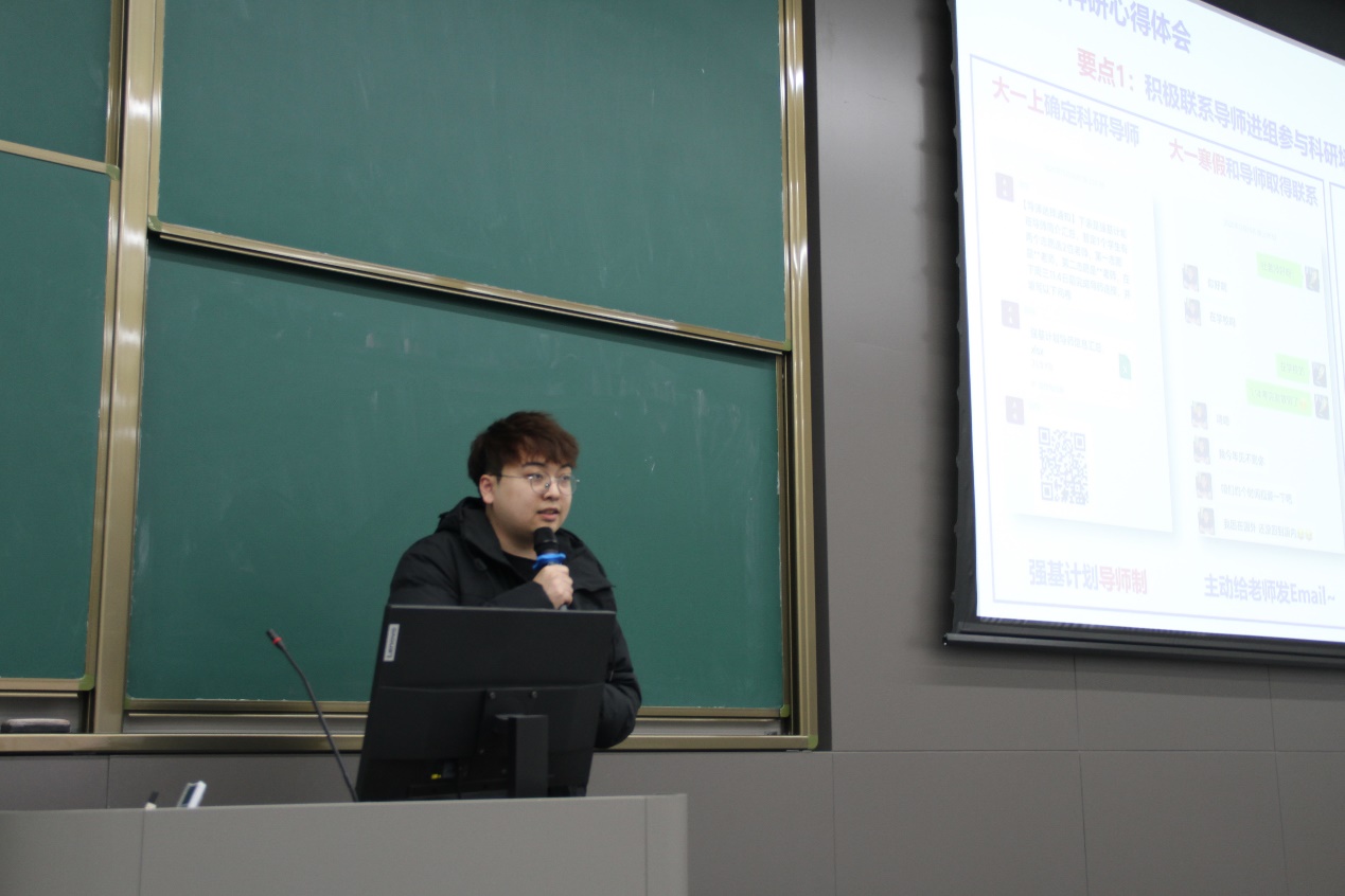 在交流环节,倪义坤老师详细解答了同学们关于如何激发参赛灵感、如何平衡学业与科研的关系、“冯如杯”参赛具体操作等疑问,耐心引导同学们积极汲取灵感,激发创新思维,探索科研方向,为未来的科研道路打下坚实的基础。
