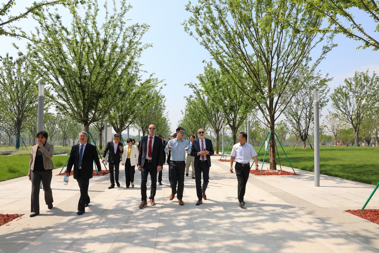 校园建设指挥部副总指挥项小兵向外宾详细介绍了校园设计理念、规划方案和建设进展,弗提亚都校长一行先后参观了图书馆、生活组团、教研组团和体育馆,并对现代化、国际化的美丽校园表示由衷赞赏。