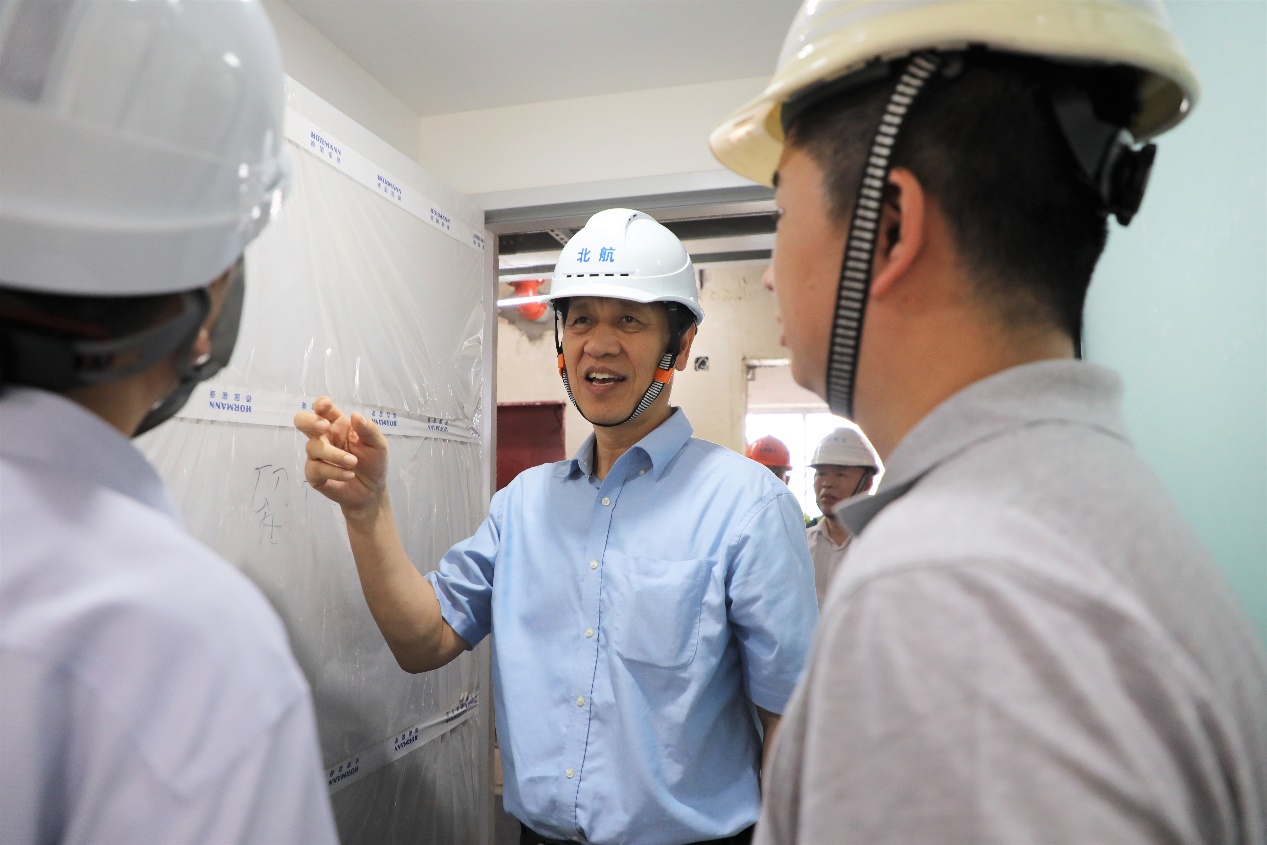徐惠彬校长先后考察了教研组团、中心组团和生活组团,听取了项小兵副总指挥关于北航中法航空校园建设进展的汇报,充分肯定了校园建设工作成果。徐惠彬校长表示,北航中法航空校园建设时间紧、任务重,但建设成效令人惊叹。他强调,各单位要克服疫情影响,继续以高标准、严要求扎实推进校园建设工作,尽快建成独具特色的、世界一流的大学校园。