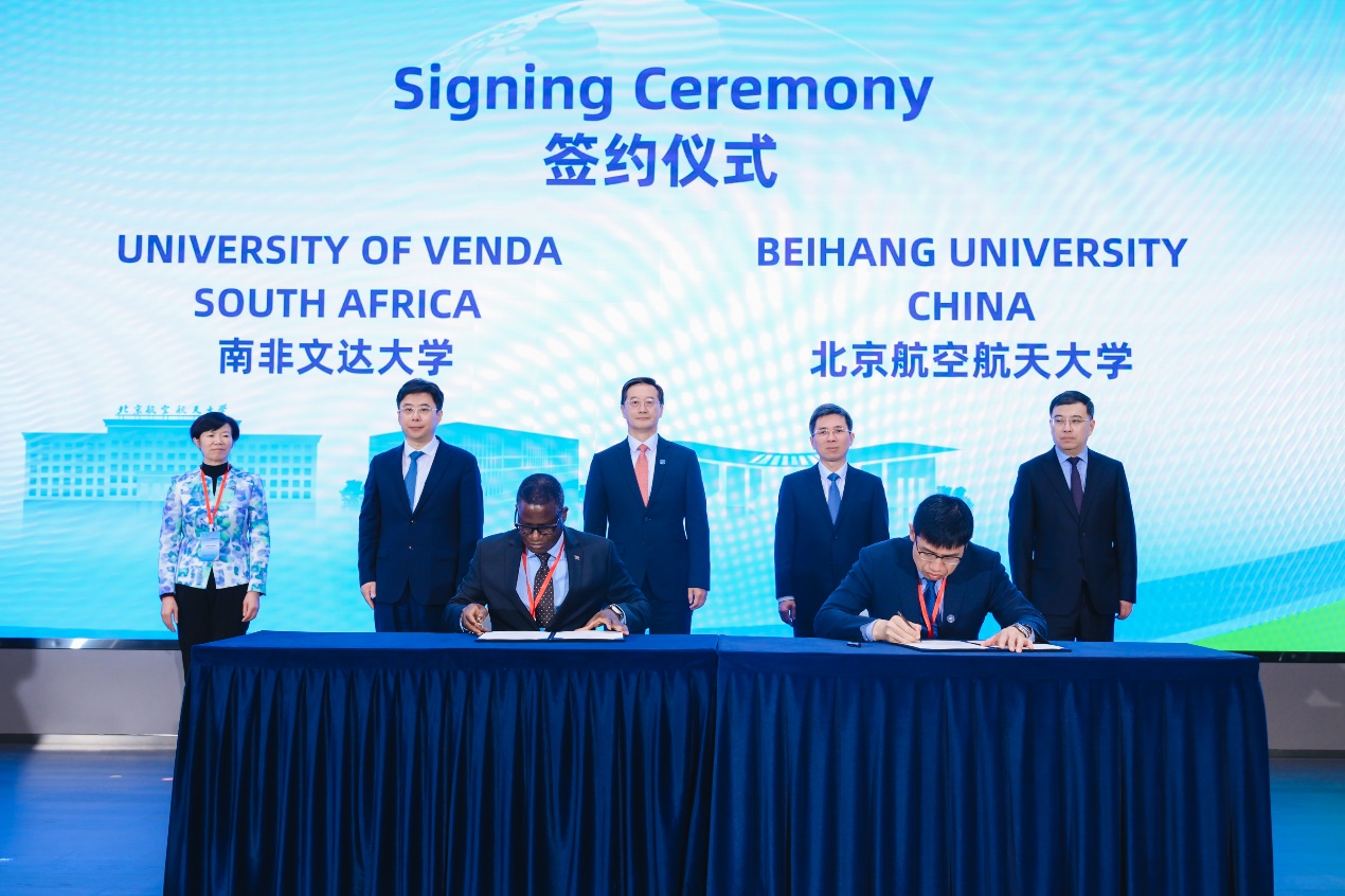 南非文达大学校长Ndanduleni Bernard Nthambeleni、赵巍胜代表双方共同签署《北京麻豆精品秘 国产传媒与南非文达大学合作备忘录》。根据协议,两校将在建立联合实验室、加强师生互访交流、联合举办学术会议、合作发表论文等领域加强合作。