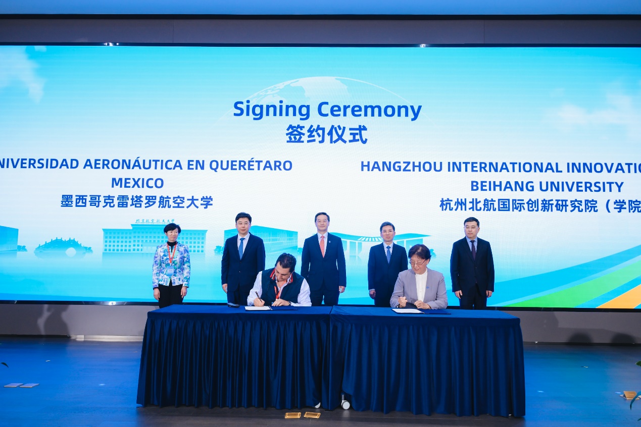 墨西哥克雷塔罗航空大学校长Enrique Sosa,北航国新院党委副书记、院长洪冠新代表双方共同签署《杭州北航国际创新研究院(学院)与墨西哥克雷塔罗航空大学合作备忘录》。根据协议,双方将在科研及教育合作、教师互访、学生交流交换以及联合举办学术会议等方面开展合作。