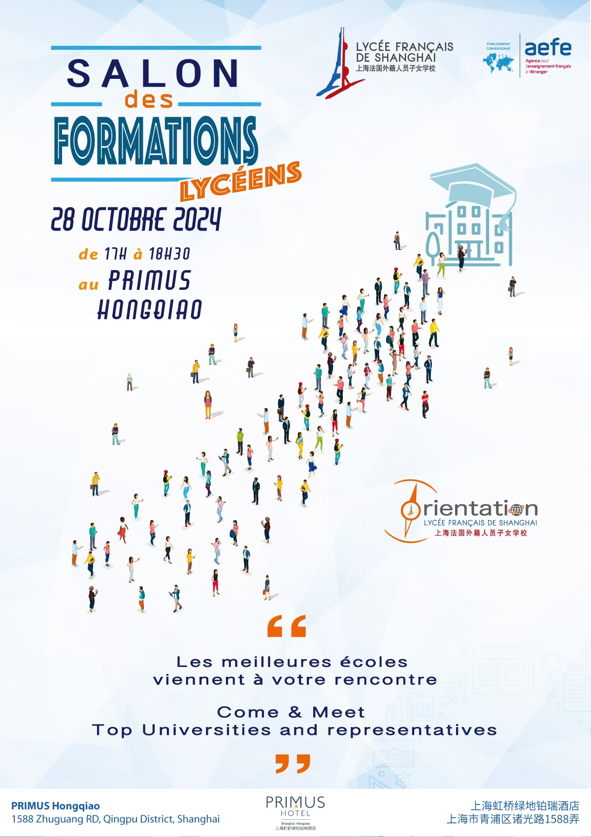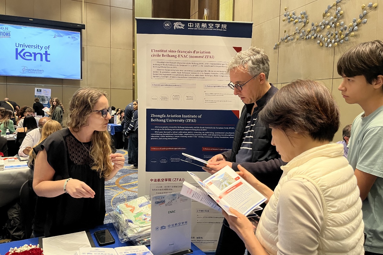10月28日,中法航空学院法方院长让帝(Frédéric GENTY)教授带队出席上海法国外籍人员子女学校高等教育沙龙活动,为即将毕业的外籍学生提供招生政策咨询。该活动吸引了包括法国国立应用科学学院(INSA)、蒙彼利埃大学、艾克斯-马赛大学、贡比涅技术大学、曼彻斯特大学、复旦大学及香港城市大学等国内外知名高校在内的众多高等教育机构参与。