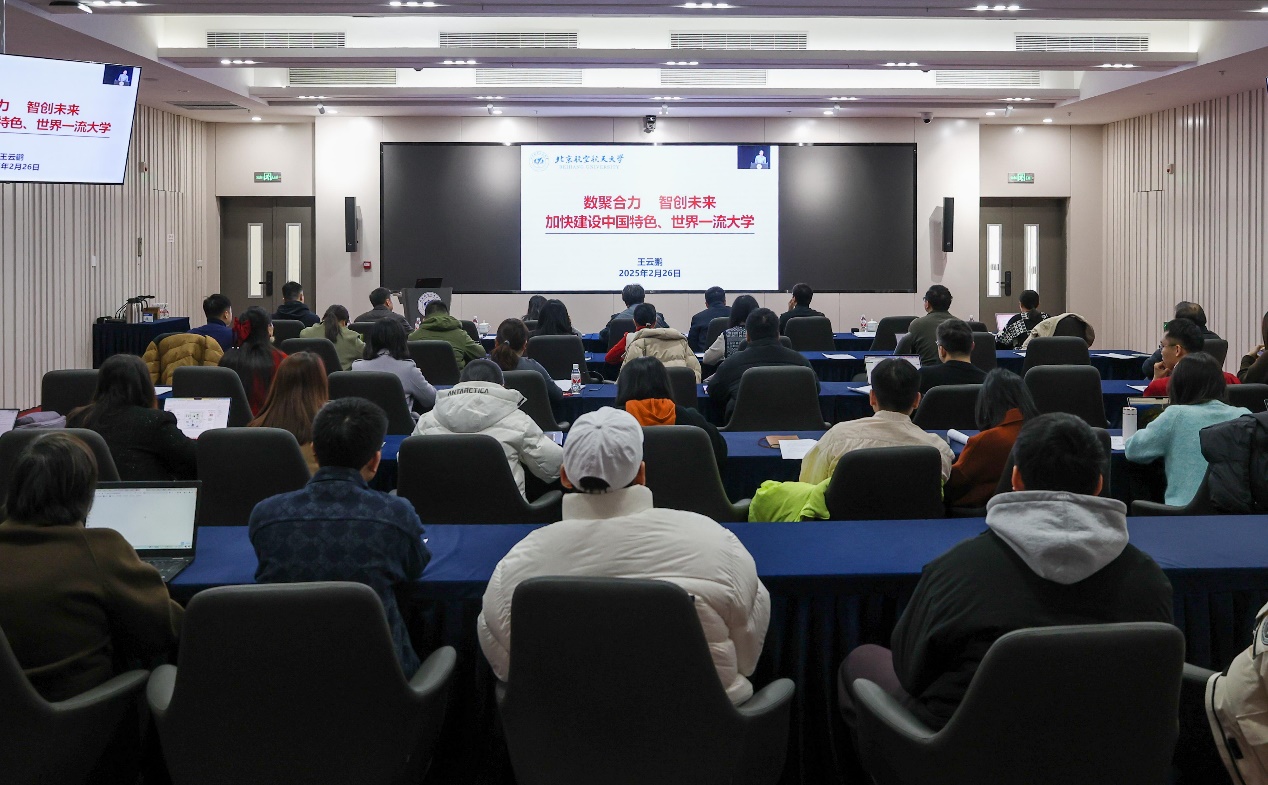 报告强调,要加强党的全面领导,高站位谋划事业发展。把贯彻落实教育强国战略部署同落实学校党代会精神相结合,围绕中心、服务大局,以高质量党建引领高质量发展,系统谋划未来5年发展目标和重点任务。统筹优化办学格局,坚持“大北航观”,优化功能和学科专业布局。要完善一流学科长效建设机制。推动学科内涵升级,持续拓展服务面向。以科技发展、国家战略需求为牵引,动态优化学科专业布局。通过数智赋能学科提质升级,做到传统方向升级、新兴方向壮大、未来方向培育。全面实施一流学科培优行动,引领带动学校学科水平整体提升。以技术需求牵引基础学科,实现基础研究与应用创新双向赋能。统筹各类办学资源,优化资源配置培育学科新优势。要完善高质量人才培养体系。强化一流教育教学资源供给,提升“招生-培养-就业”全链条质量。确保生源质量稳中有进。打造一批数字课程、教材和案例。深化混合式教学模式改革,强化自主学习和实践。建设未来学习中心。深化工程硕博士培养改革。试点项目制育人,推动学生从被动学习知识到主动创造知识转变。提升“学工+”工作实效。校院联动做好教学成果奖培育。要提升体系化创新能力。深化科研“四大”模式,强化基础研究和关键核心技术攻关。有组织谋划承担大项目,牵头论证国家重大重点专项,积极承担重大任务,加强基础研究项目培育。提升大平台建设效能,积极培育打造新平台,提升校地合作平台自主发展能力。培育产出国家科技奖等重大成果。要培养造就高水平教师队伍。坚持人才强校战略,提升“引-育-考”全过程效能。提升人才引进精准度,优化多模式用人机制。加强人才分类精准培育,提升教师数智素养和能力。压实责任,精考细核,完成全员合同签订。要深化国际交流合作。统筹做好“走出去”和“引进来”,提升国际影响力竞争力。推进国际学院模式改革,大力推动学生实质性国际交流,加强教师国际科技合作。立足杭州打造国际科教合作示范区,校、院两级全球合作伙伴均实现量升质提,带动提升京杭两地三校园国际化水平。要数智赋能一流治理。强化数智赋能,提升管理运行和服务保障效能。建好校级大数据平台,数智赋能管理服务,提供智能服务、支撑科学决策。积极培育“人工智能+”新生态,构建AI赋能体系。关心关爱师生成长发展,涵育一流文化、广泛凝聚合力,推动发展成果惠及全体师生。