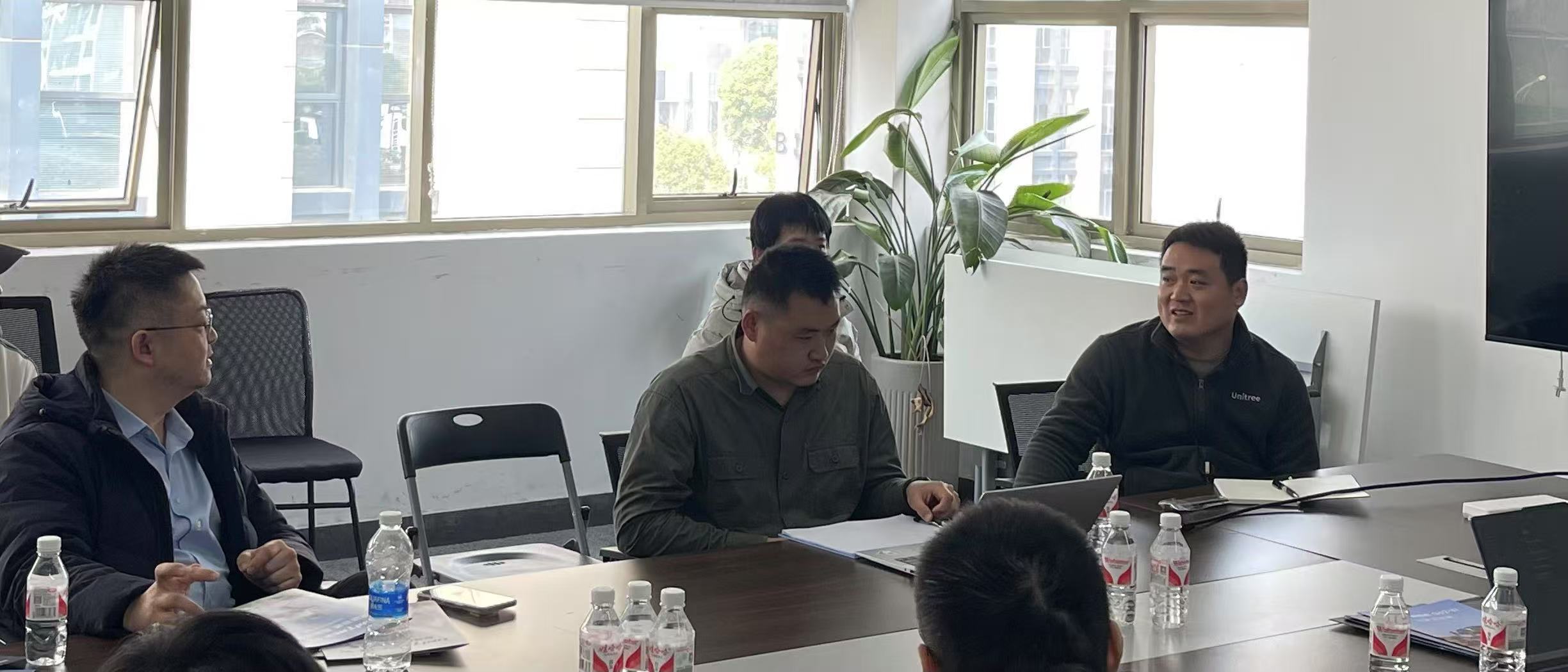 △ 清华大学聂鑫教授(左)与宇树科技产品经理(右)、高级技术工程师(中)探讨合作方案