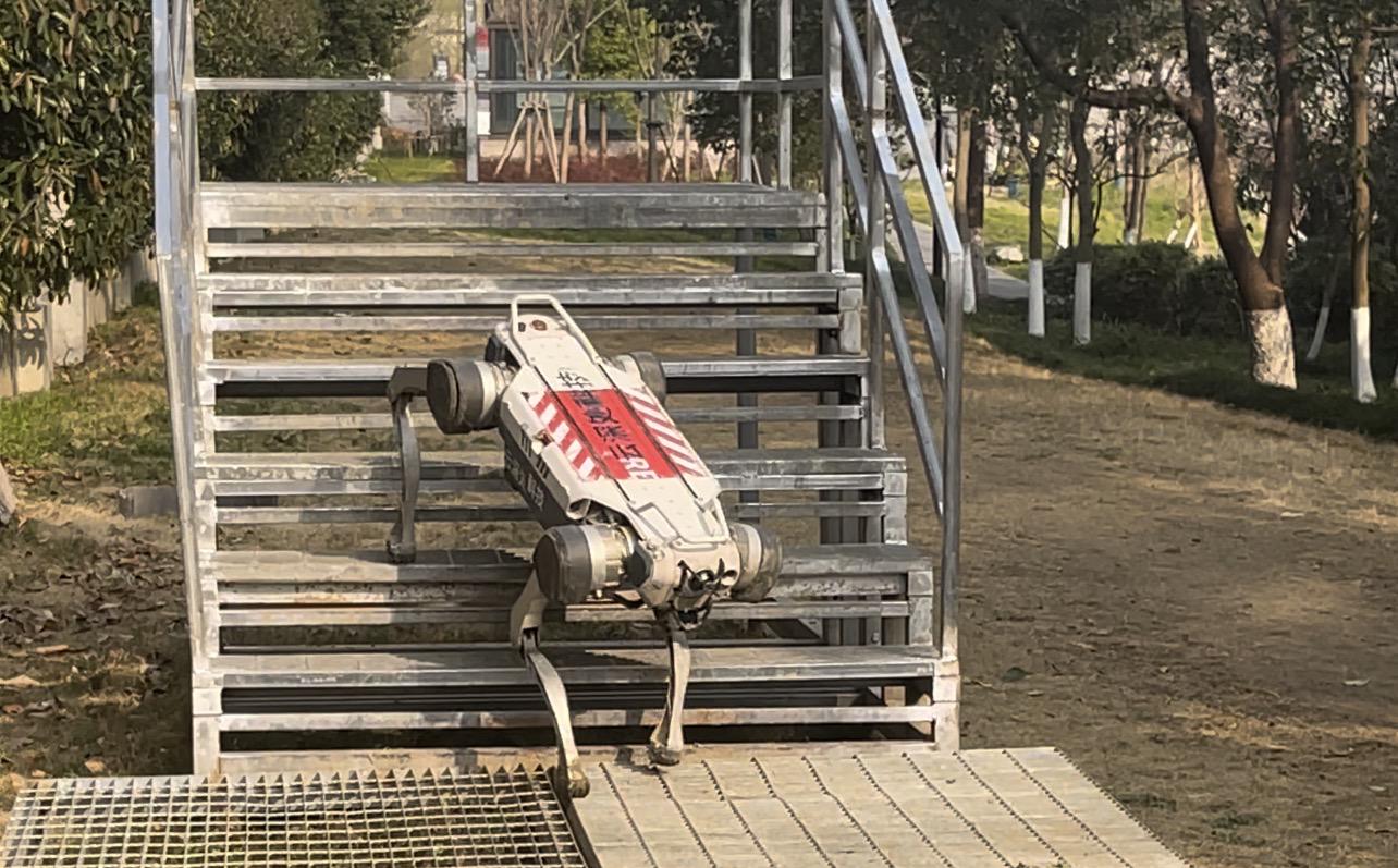 △ 绝影X30机器人展示爬楼和野外运动能力