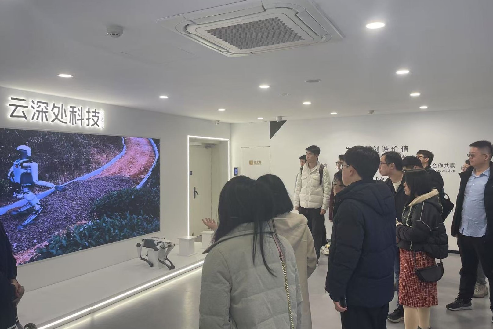 △ 联合考察团观看云深处科技人形机器人宣传片