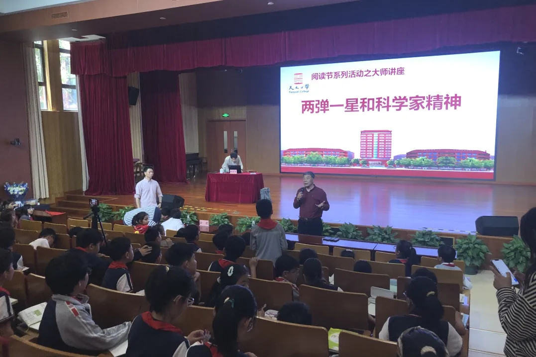 △4月8日和10日,郑彦良教授先后走进富阳区实验小学、富阳常安镇小学和景苑中学,为同学们作题为《中国航空航天发展与科学家精神》的报告