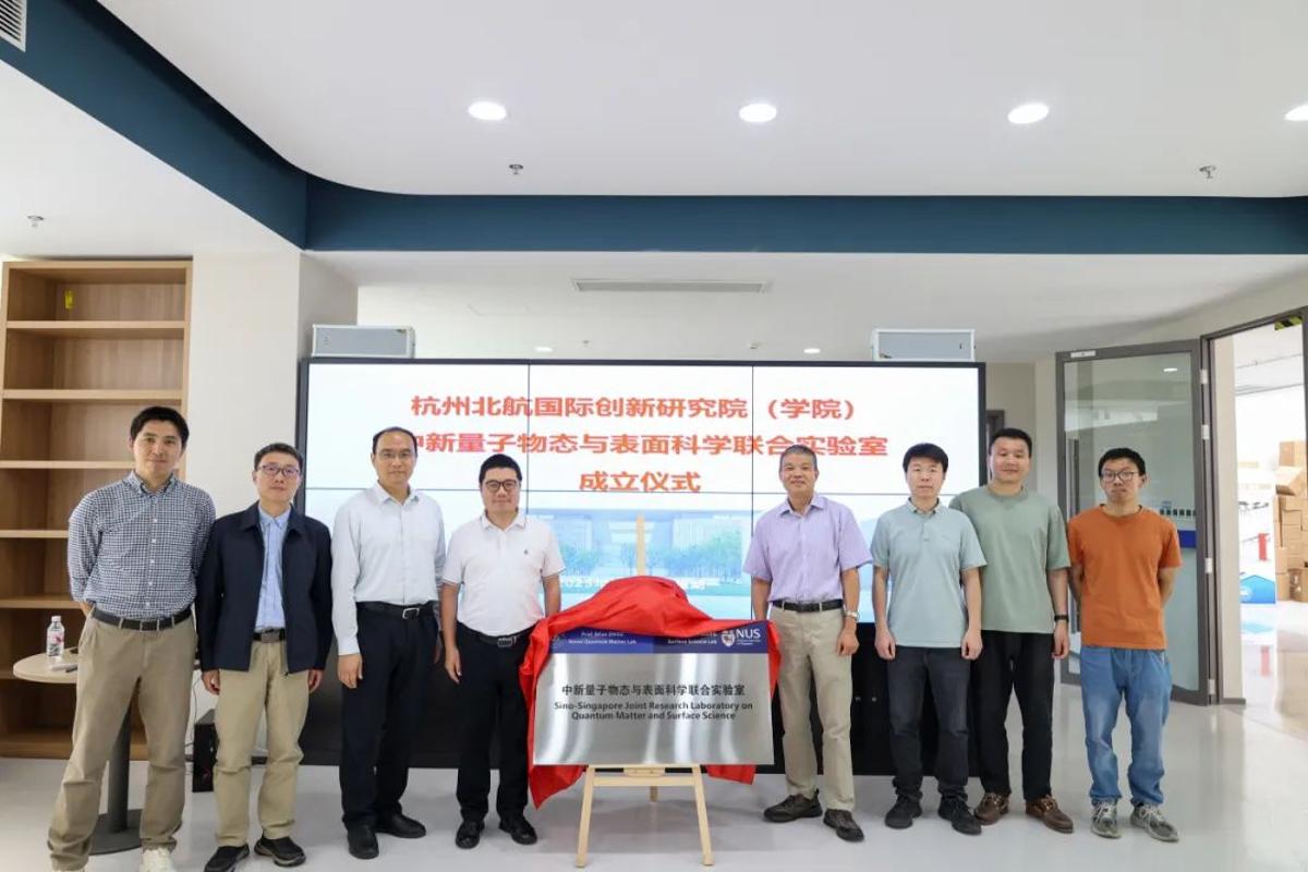 5月19日上午,北航国新院与新加坡国立大学合作共建的中新量子物态与表面科学联合实验室在北航杭州国际校园科研一号楼正式揭牌。北航国新院院长董卓宁、新加坡国立大学王学森教授、物理化学科教平台主任周苗教授、物理化学科教平台副主任牛天超教授、浙江大学陆赟豪教授、杭州师范大学钟建强教授、天津工业大学朱涛副教授、物理化学科教平台华陈强副教授、武媚媚实验师以及平台博士后与硕博士研究生参加活动。揭牌仪式由周苗主任主持。