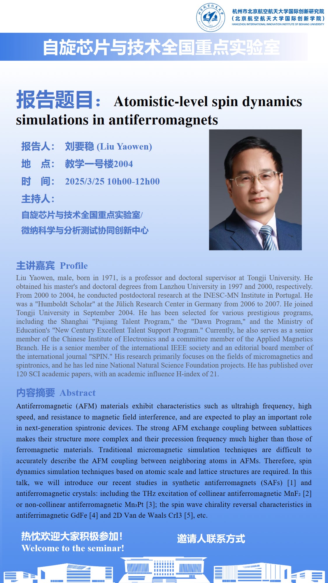 活动主题:Atomistic-level spin dynamics simulations in antiferromagnets