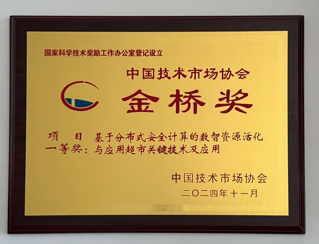 (通讯员/张莹莹)近日,第十二届中国技术市场协会“金桥奖”颁奖典礼在北京举行。北航国新院、杭州市大数据管理服务中心、中移动信息技术有限公司及杭州城市大数据运营有限公司等优势单位,凭借《基于分布式安全计算的数智资源活化与应用超市关键技术及应用》项目,历经数月严格评审,从全国近千个优秀项目中脱颖而出,荣膺最高奖项——项目一等奖。这一殊荣不仅彰显了北航在数字化转型领域的科研实力,更凸显了该项目在推动数字经济发展方面的重要价值。